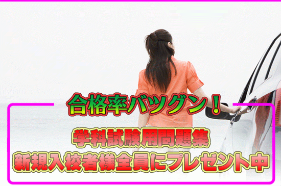 仮免学科試験用、本免学科試験用の問題集を、新規入校者様全員にプレゼントいたします。
